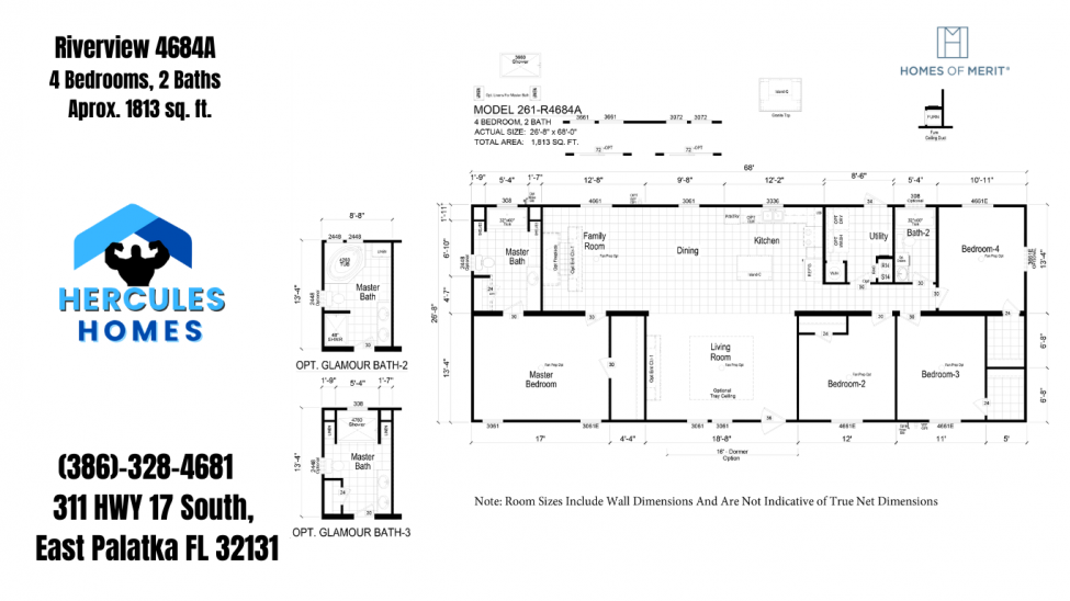 1813 SQ. FT. | 4 Bedroom | 2 Bath | 68′ X 26’8″