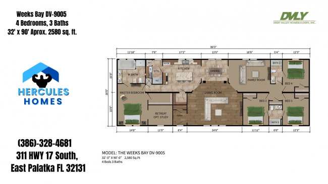 2580 SQ. FT. | 4 Bedroom | 3 Bath | 32′ X 90′
