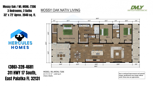 2040 SQ. FT. | 3 Bedroom | 2 Bath | 32′ X 72′