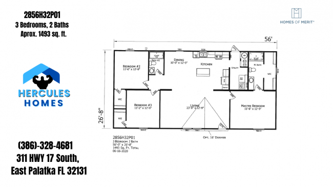 1494 SQ. FT. | 3 Bedroom | 2 Bath | 56′ X 26’8″